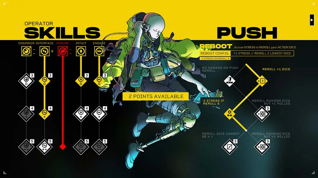 骰子驱动机制:行动结果由骰子判定,新增“骰子破碎/故障”资源限制和压力系统,失败会累积压力值并影响后续行动。