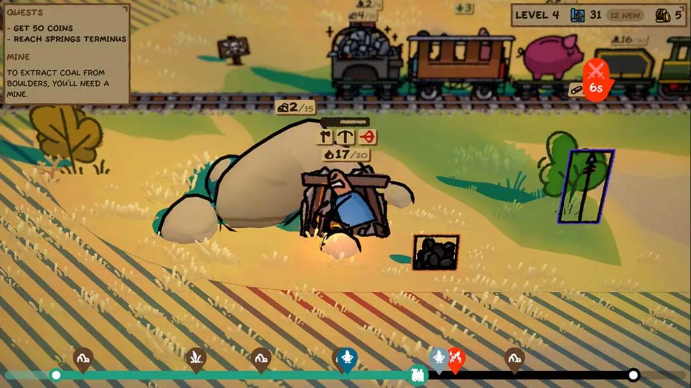 《Trackline Express》(特快小火车)是一款融合策略、资源管理与轻度冒险元素的火车建造类独立游戏,由Bubblebird Studio开发并发行,于2024年4月18日正式登陆Steam、Nintendo Switch等平台。玩家将扮演一名火车维修员,在荒芜的沙漠中收集稀缺资源,建造并升级一列能够抵御野火、野蛮人袭击和轨道损毁的小火车,确保乘客安全抵达终点站。